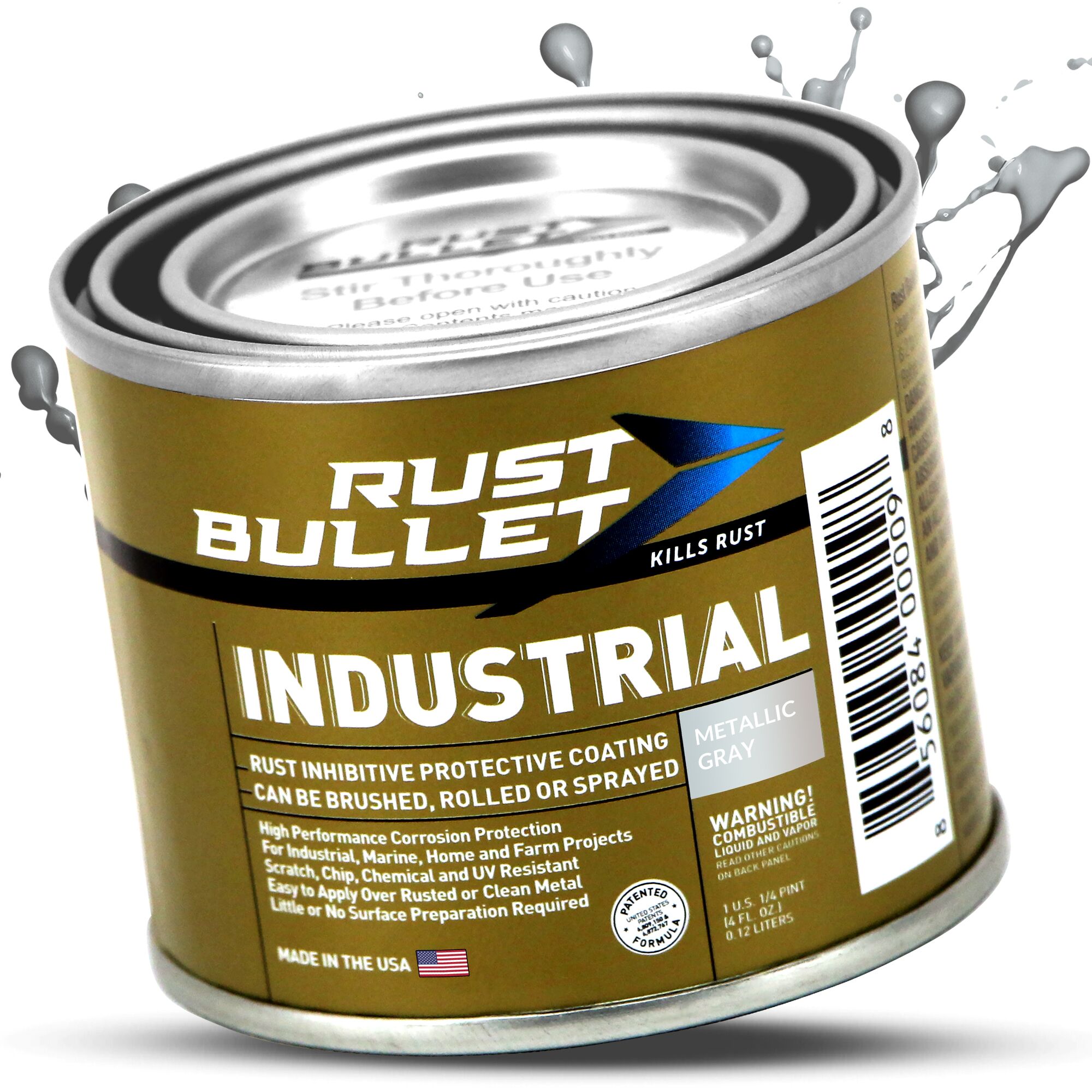 1/4 Pint – Rust Bullet Industrial is a one part, super tough, high performance, rust inhibitive coating. It is simple to apply, and because of its super strong rust inhibitive qualities, maintenance is extremely easy. Metallic gray in color.