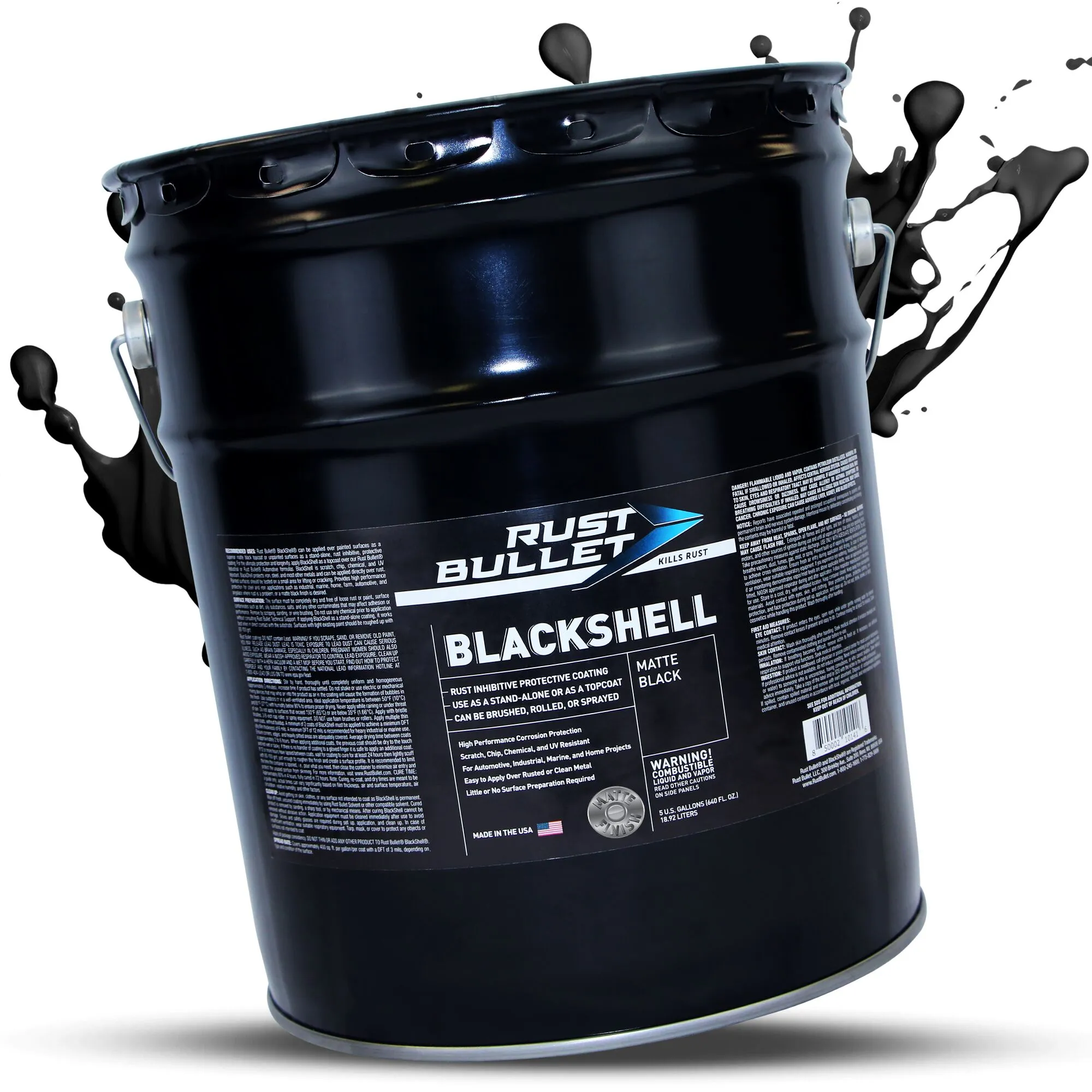 5 Gallon Pail – Introducing Rust Bullet® BlackShell® Matte, the modern, flat-black solution for ultimate rust protection. Engineered for those who prefer a sleek, non-reflective finish without compromising on the legendary durability of the Rust Bullet system. As a robust, all-in-one coating, BlackShell Matte provides a flat black, rust-inhibitive barrier. A minimum 2-coat application ensures a uniform matte finish that is as tough as it is good-looking. Use BlackShell Matte as a matte topcoat over Rust Bullet Automotive or Industrial formulas. This combination delivers the same armor-tough, chip-resistant protection against rust and corrosion, but with a contemporary, low-gloss aesthetic. The perfect choice for automotive projects, machinery, interior fixtures, and outdoor equipment where a low-glare, professional matte finish is desired.