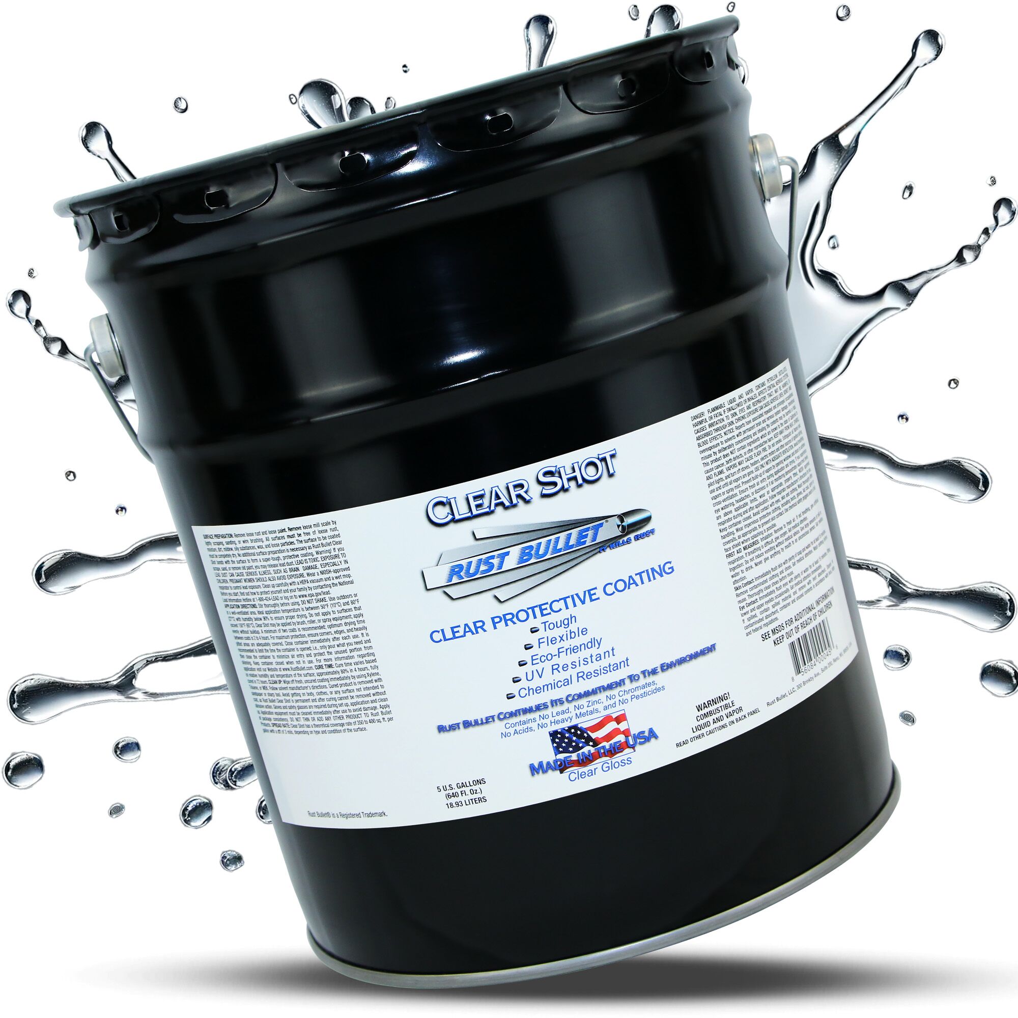 5 Gallon Pail – Clear Shot is a clear rust inhibitive, protective coating and topcoat. Clear Shot is single component, UV resistant urethane that will not crack, chip, yellow, or peel and dries to an incredibly hard water clear finish. Clear Shot can be applied over painted or unpainted surfaces including wood and can be brushed, rolled, or sprayed, is self-leveling and will not leave brush marks. Covers approximately 2,000 square feet per coat. If used as a stand-alone protective coating, minimum 2 coat application required.