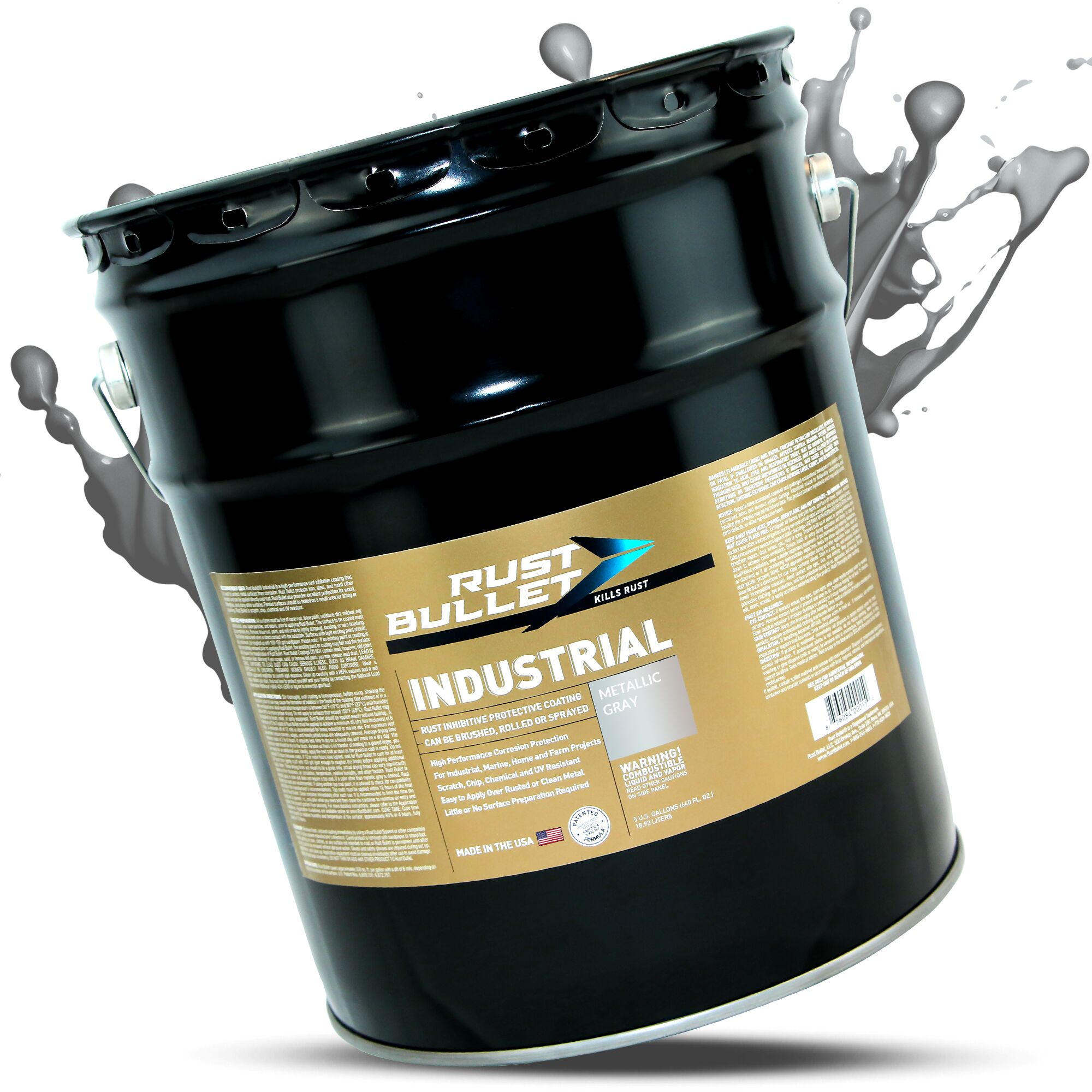 5 Gallon Pail – Rust Bullet Industrial is a one part, super tough, high performance, rust inhibitive coating. It is simple to apply, and because of its super strong rust inhibitive qualities, maintenance is extremely easy. Metallic gray in color.