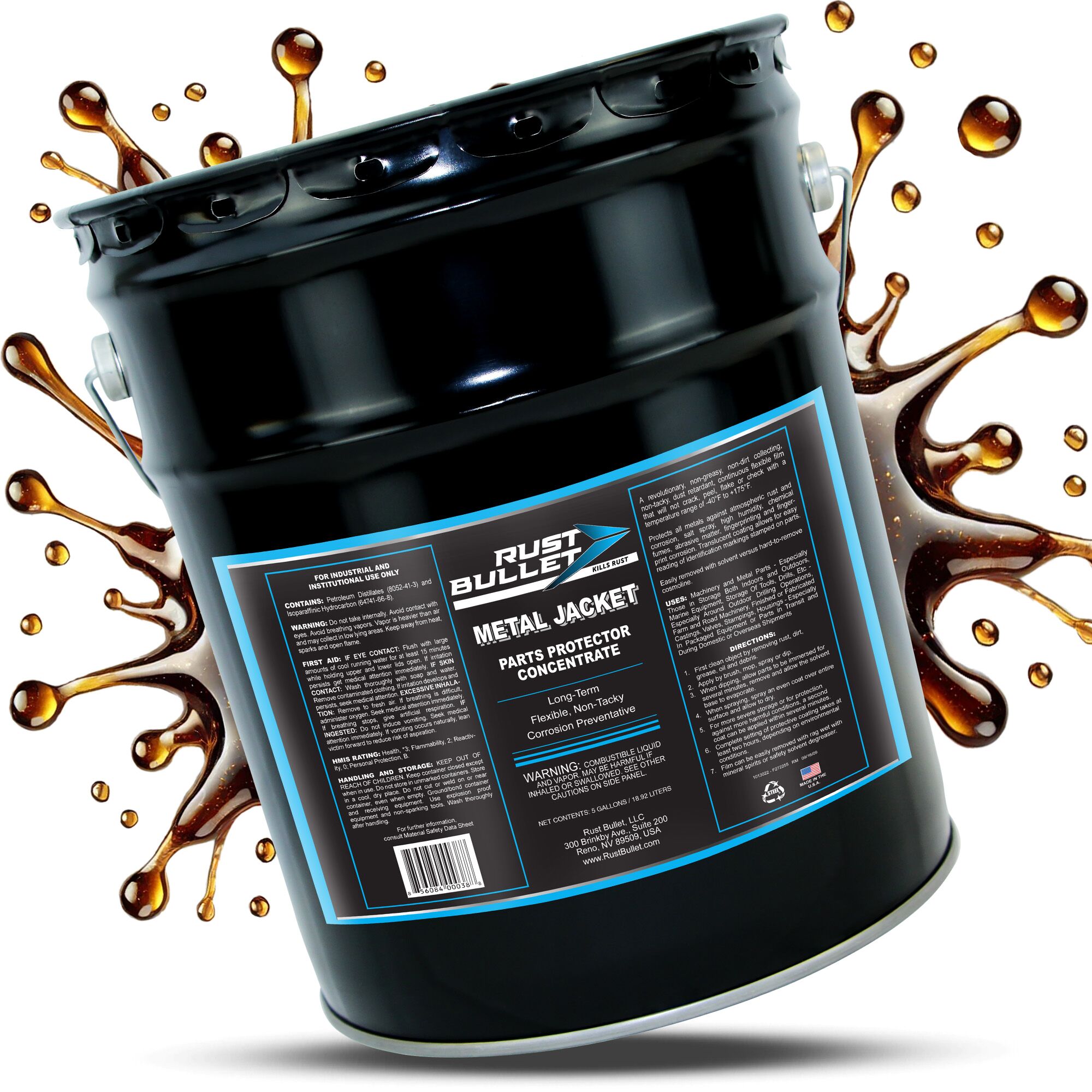 5 Gallon Pail – Metal Jacket is a high-performance rust preventive coating designed to deliver superior corrosion protection for metal surfaces in the harshest environments. Ideal for industrial, automotive, military, and marine applications, Metal Jacket forms a durable, wax-like barrier that seals out moisture, salt, and chemicals, effectively preventing rust and oxidation. This long-lasting rust inhibitor is easy to apply and remove, making it perfect for both short-term storage and long-term preservation of tools, machinery, firearms, and metal equipment. Can be completely removed with most solvents when no longer needed. Dries to a transparent, amber, waxy film and can be applied by spray, dip, or brush. Choose Metal Jacket for reliable, heavy-duty protection that keeps your metal assets in pristine condition.