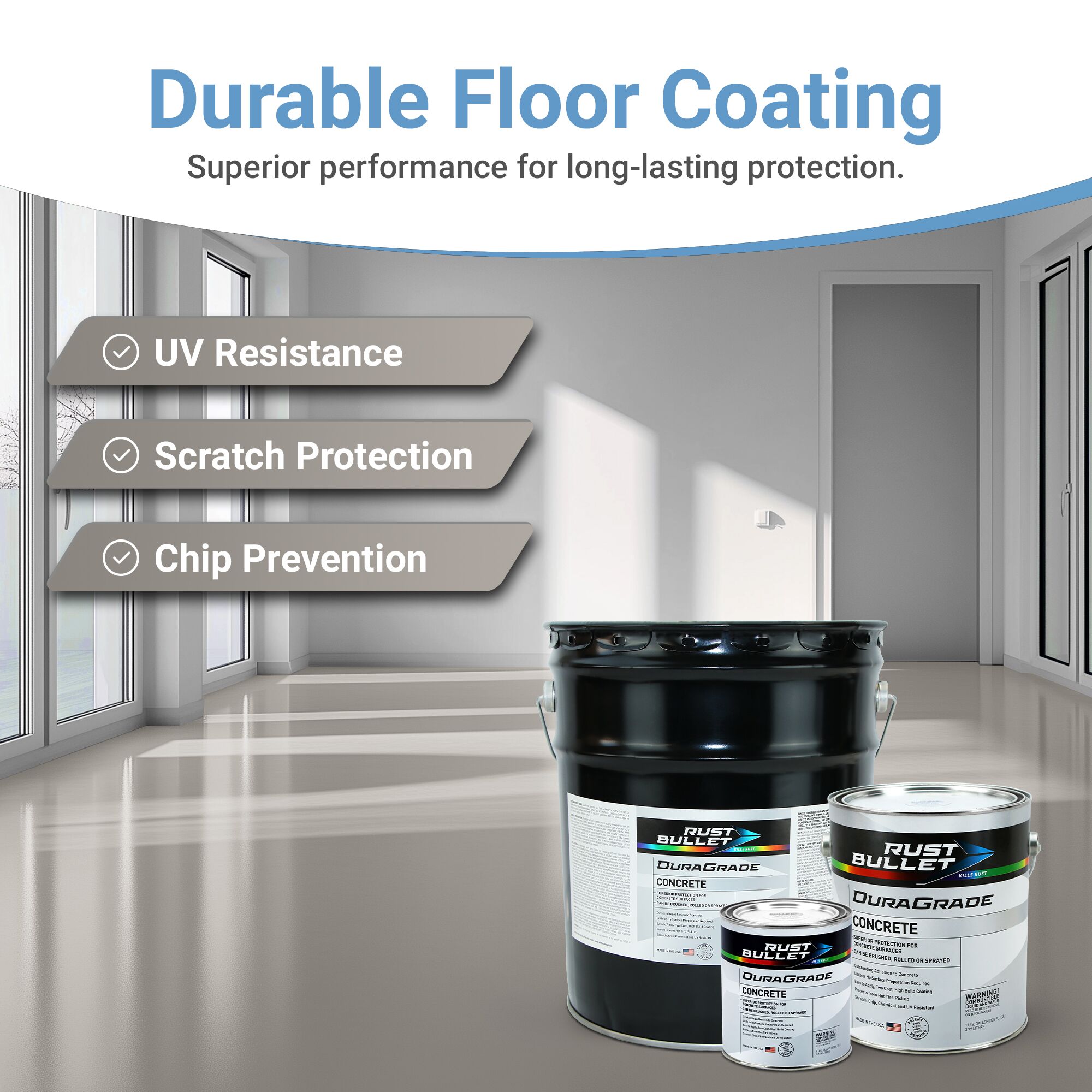 Available in a Quart, Gallon, or 5 Gallon Pail – Rust Bullet DuraGrade Concrete is a high-performance, durable coating specifically designed for concrete surfaces. DuraGrade Concrete provides exceptional protection against water, chemicals, UV rays, and abrasive conditions, making it ideal for both indoor and outdoor surfaces. Unlike traditional epoxy concrete coatings, Rust Bullet DuraGrade Concrete can be applied directly over concrete without the need for acid etching, grinding, or blasting. This saves time and labor costs. It is suitable for a wide range of applications including garages, warehouses, industrial floors, and even decorative concrete surfaces. Rust Bullet DuraGrade Concrete is an excellent choice for anyone seeking a reliable, easy-to-use, and long-lasting concrete coating solution. Whether for industrial, commercial, or residential use, it provides an efficient and cost-effective way to protect and enhance concrete surfaces.