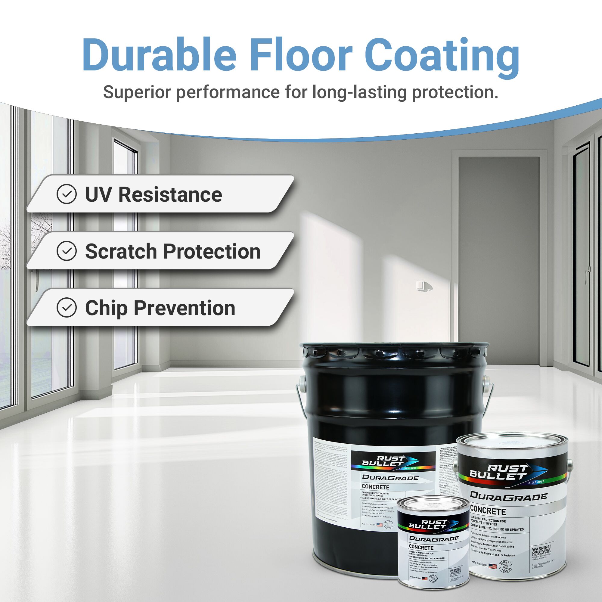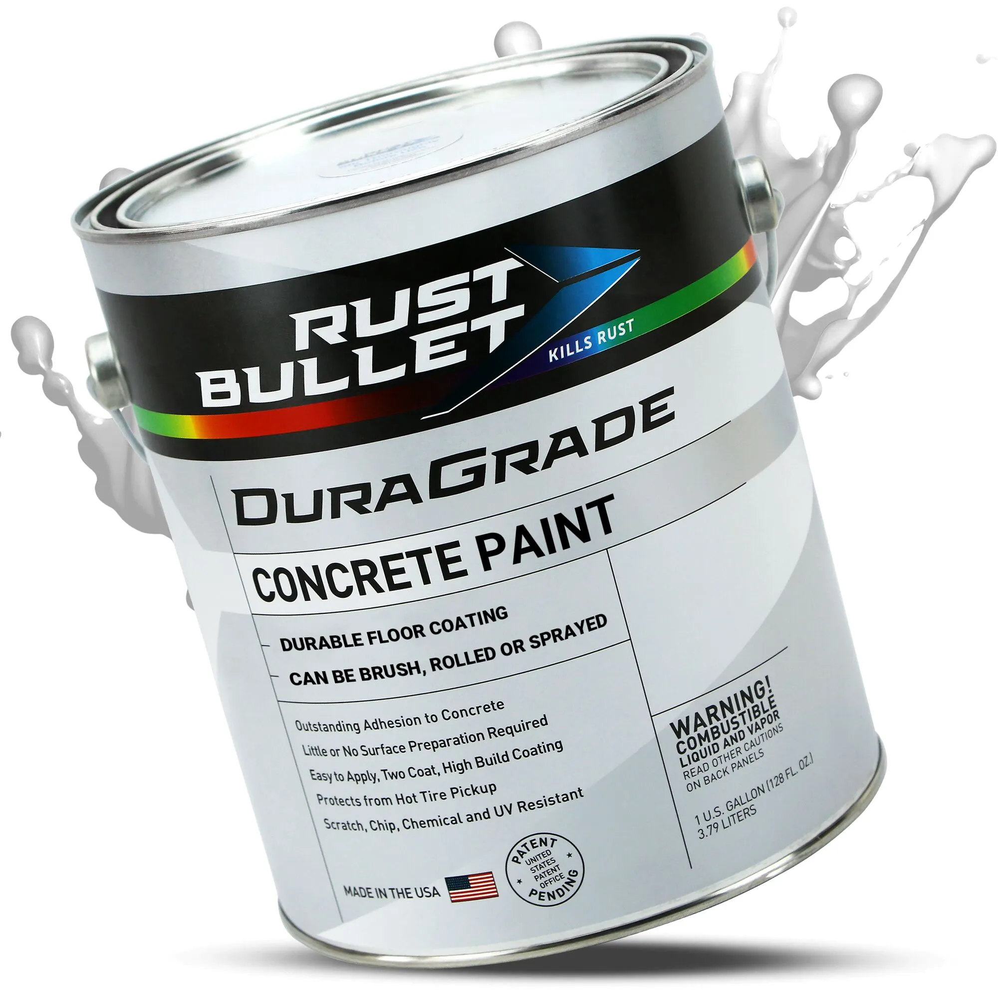Available in a Quart, Gallon, or 5 Gallon Pail – Rust Bullet DuraGrade Concrete is a high-performance, durable coating specifically designed for concrete surfaces. DuraGrade Concrete provides exceptional protection against water, chemicals, UV rays, and abrasive conditions, making it ideal for both indoor and outdoor surfaces. Unlike traditional epoxy concrete coatings, Rust Bullet DuraGrade Concrete can be applied directly over concrete without the need for acid etching, grinding, or blasting. This saves time and labor costs. It is suitable for a wide range of applications including garages, warehouses, industrial floors, and even decorative concrete surfaces. Rust Bullet DuraGrade Concrete is an excellent choice for anyone seeking a reliable, easy-to-use, and long-lasting concrete coating solution. Whether for industrial, commercial, or residential use, it provides an efficient and cost-effective way to protect and enhance concrete surfaces.