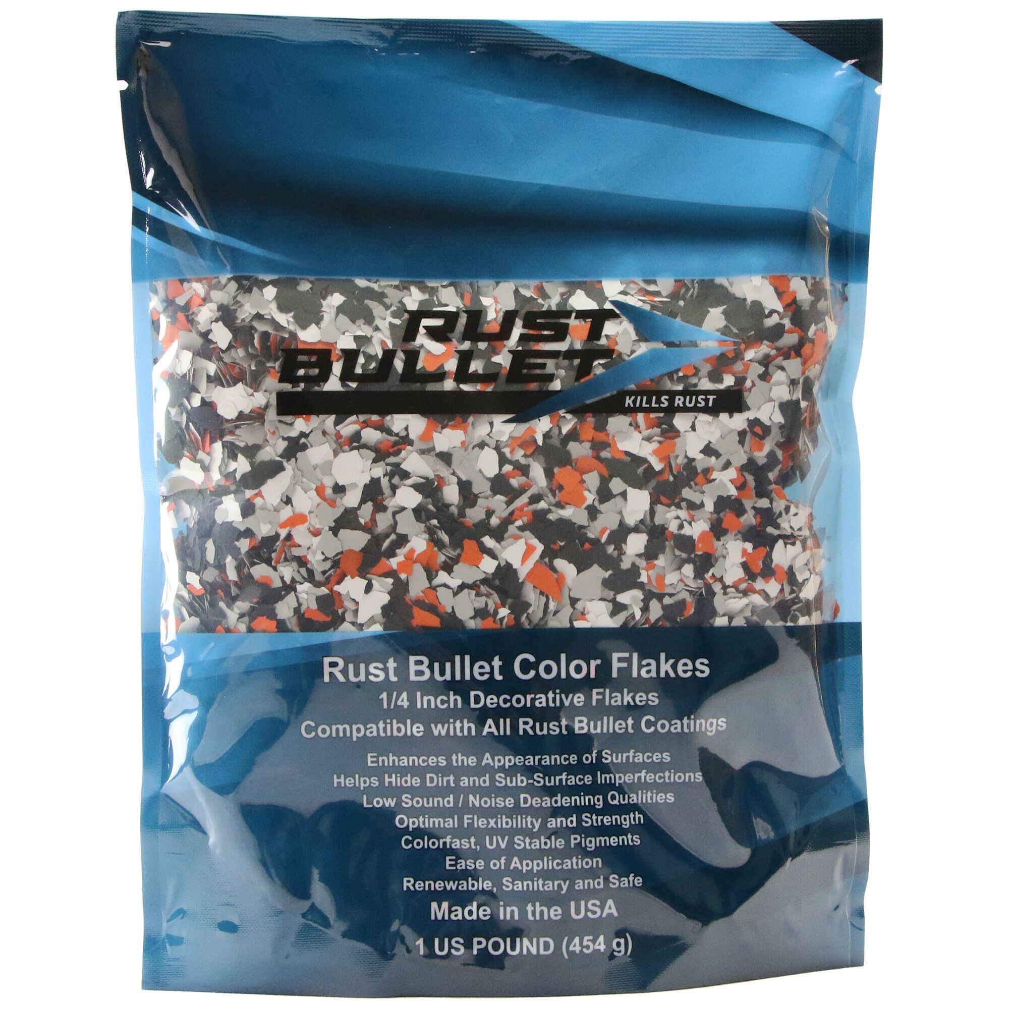 Rust Bullet Color Flakes are specially formulated paint aggregates used to enhance the aesthetic qualities of Rust Bullet’s Concrete Coatings.
