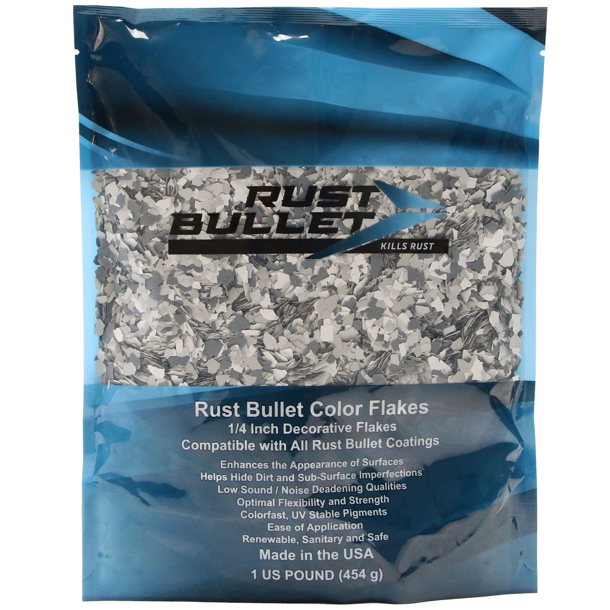Rust Bullet Color Flakes are specially formulated paint aggregates used to enhance the aesthetic qualities of Rust Bullet’s Concrete Coatings.