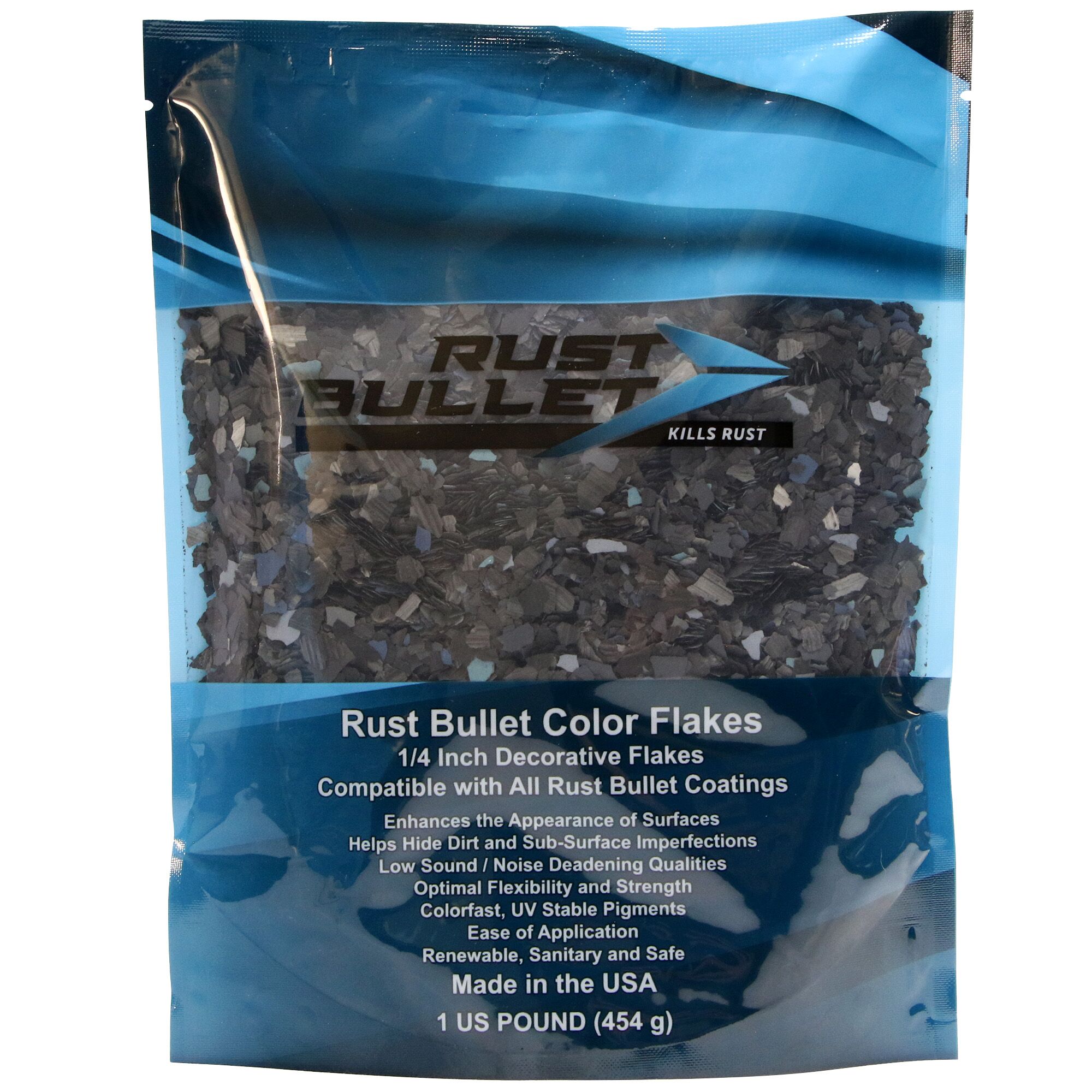 Rust Bullet Color Flakes are specially formulated paint aggregates used to enhance the aesthetic qualities of Rust Bullet’s Concrete Coatings.