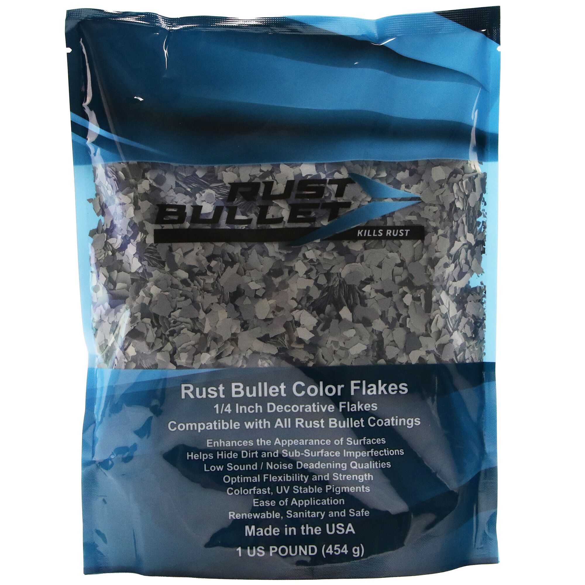 Rust Bullet Color Flakes are specially formulated paint aggregates used to enhance the aesthetic qualities of Rust Bullet’s Concrete Coatings.